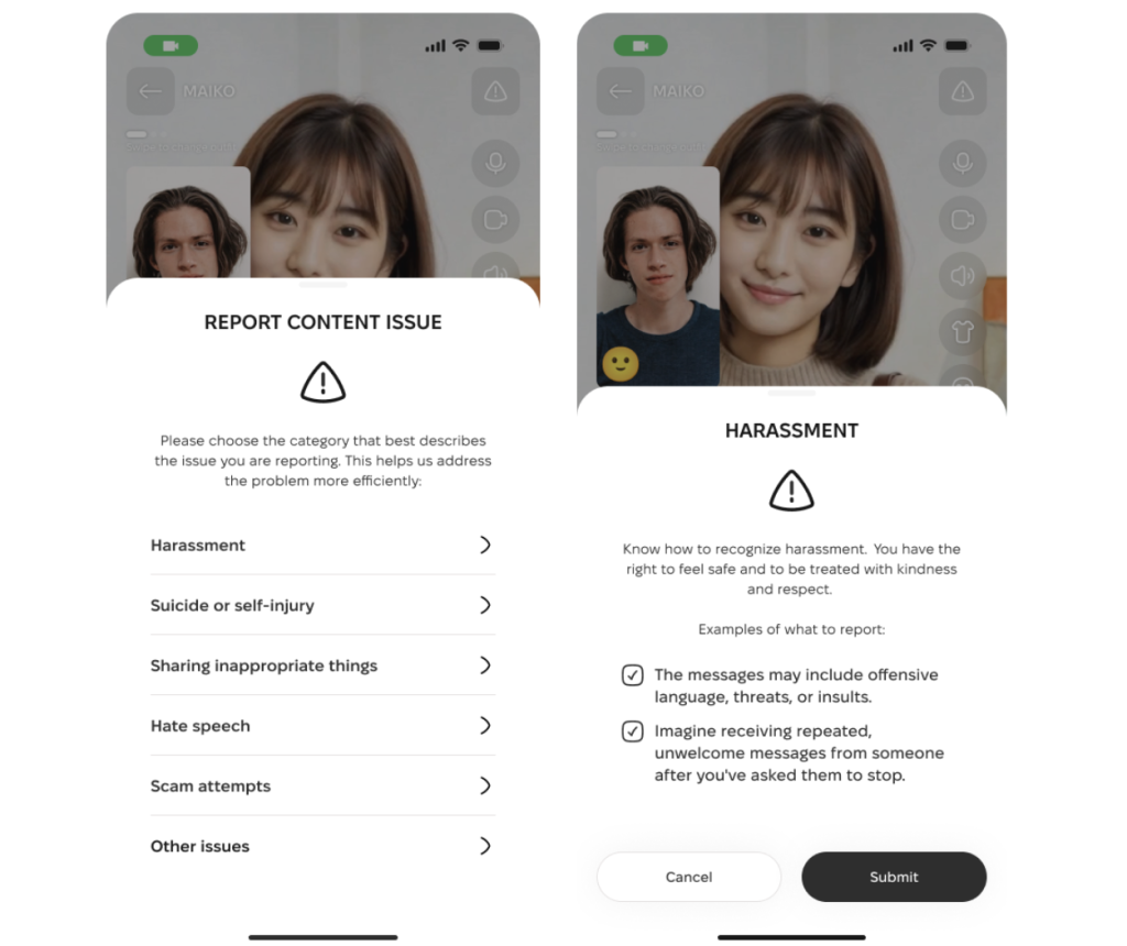 With our latest update, version 3.12.0, you can now report inappropriate content in avatars during calls or chats. Whether it's hate speech, harassment, scams or anything unsafe, just flag it - and our team will take care of the rest.