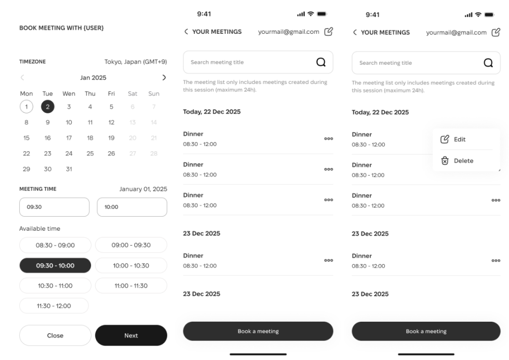 For those wishing to share this new smart scheduling interface, please note that it is only available via the shareable link, it is not available if you send a Line OA link to your friends and the experience is web-only (not yet within the AIAvatar app). In our next version, we will expand this feature so that you can schedule by call/chat and from the AIAvatar app interface.